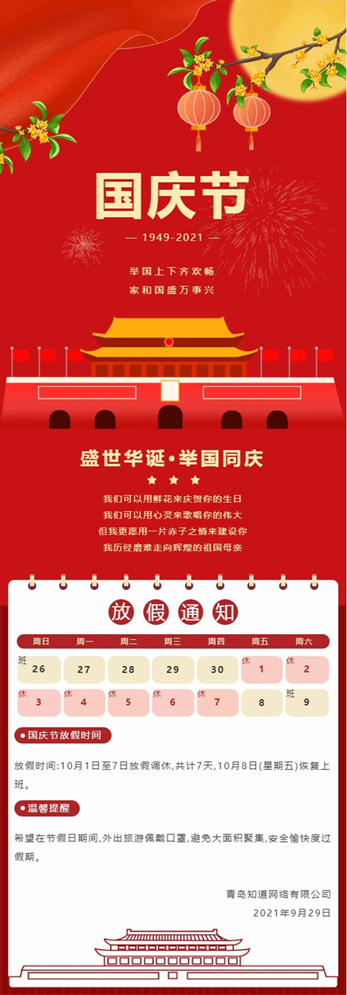 【知道網(wǎng)絡(luò)】國慶節(jié)放假通知