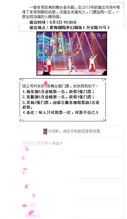有6張音樂情景劇的門票哦~只有6張怎么辦呢?當(dāng)然是投票選舉嘍!