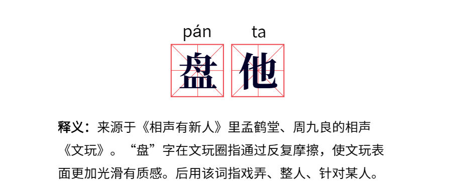 重點筆記:“盤他”的語氣和英語里的“do it !”東北話里的“干他”語氣比較接近,短小精悍的動詞說起來郎朗上口,成為了它廣泛傳播的一大優(yōu)勢。