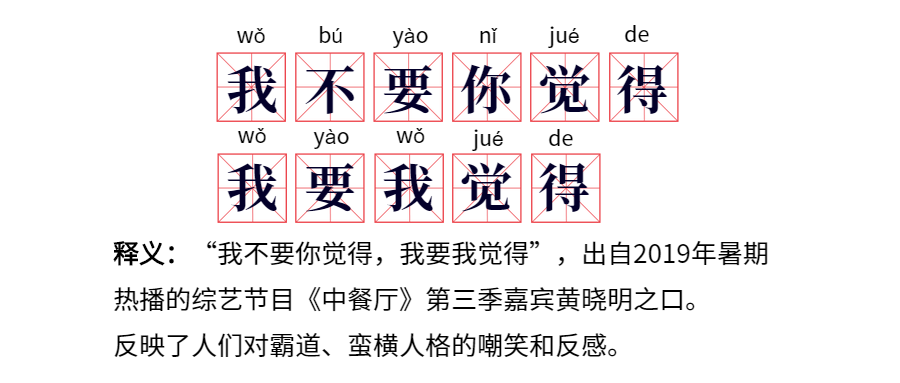 12月2日,《咬文嚼字》編輯部公布了2019年十大流行語,分別是文明互鑒、區(qū)塊鏈、硬核、融梗、“××千萬條,××第一條”、檸檬精、996、“我太難/南了”、“我不要你覺得,我要我覺得”、霸凌主義。