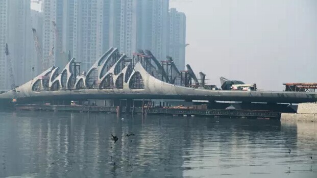 據(jù)悉,連島一號橋位于青島西海岸新區(qū)靈山灣影視文化產(chǎn)業(yè)區(qū)內(nèi),是連接濱海大道和星光島的核心工程,該橋北接萬達(dá)茂,南聯(lián)大劇院,因其獨(dú)特的珊瑚貝造型在青島橋梁界獨(dú)樹一幟。橋梁長度290米,寬度為36米,雙向6車道,設(shè)計(jì)車速為40km/h,為景觀性橋梁。
