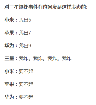 中國(guó)爆了幾部機(jī)卻說(shuō)我們用微波爐加熱引爆的,各種理由不召回,還讓我們背黑鍋。美國(guó)炸了幾部機(jī)就全線召回。