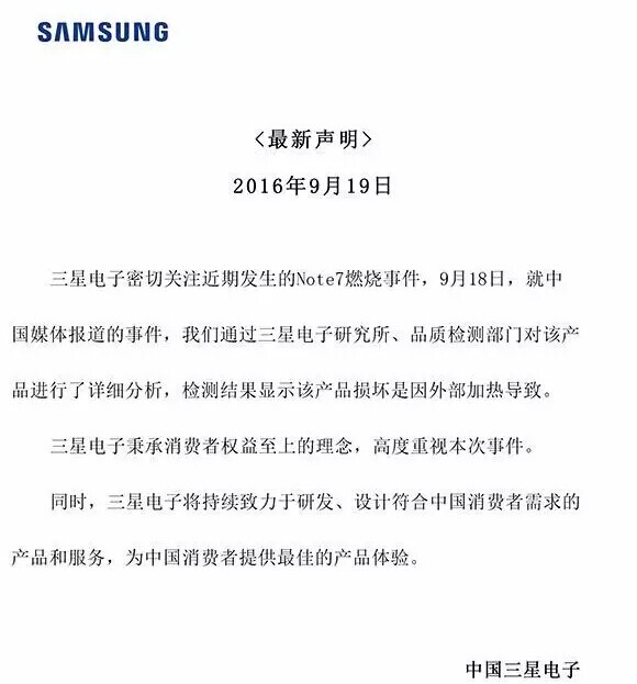 8月中旬,Note7持續(xù)爆炸,三星立刻對(duì)美國(guó)、韓國(guó)進(jìn)行召回,而對(duì)中國(guó)只用了200字的聲明,就被排除在外。