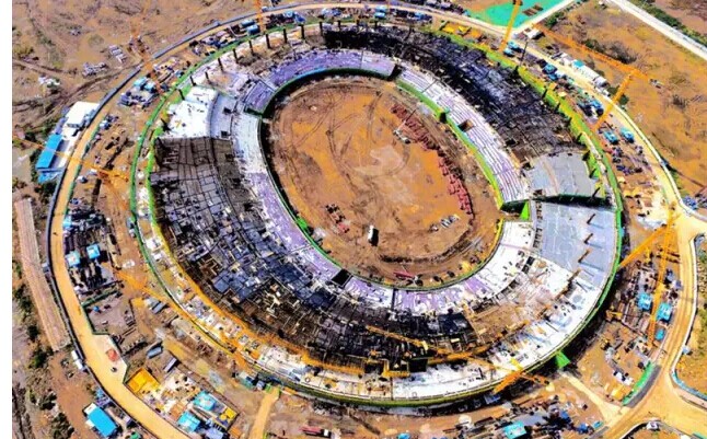2018年省運(yùn)會(huì)舉辦地——青島市民健身中心項(xiàng)目首層五萬(wàn)平米結(jié)構(gòu)已完成合攏。