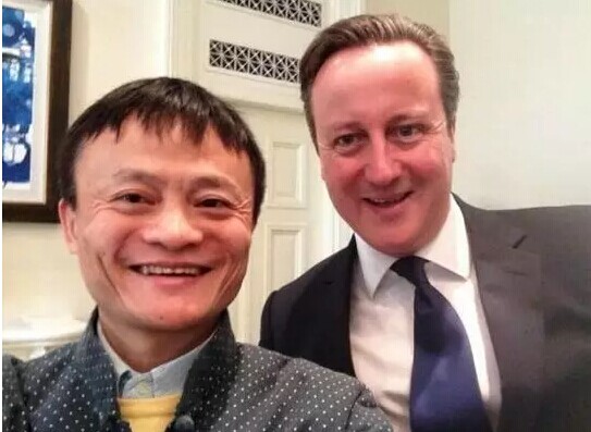 2013年,馬云和英國首相卡梅倫約會后,卡梅倫在推特上分享了兩個好基友的自拍照??穫惻c馬云共同見證了英國投資貿(mào)易總署與阿里簽署合作備忘錄。
