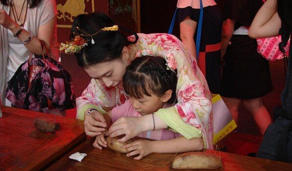 穿針乞巧作為一種古老的漢族節(jié)日習(xí)俗,這是最早的乞巧方式,始于漢,流于后世?!段骶╇s記》說(shuō):“漢彩女常以七月七日穿七孔針于開(kāi)襟樓,人具習(xí)之。”南朝梁宗謀《荊楚歲時(shí)記》說(shuō):“七月七日,是夕人家婦女結(jié)彩樓穿七孔外,或以金銀愉石為針。”《輿地志》說(shuō):“齊武帝起層城觀,七月七日,宮人多登之穿針。世謂之穿針樓。”五代王仁?!堕_(kāi)元天寶遺事》說(shuō):“七夕,宮中以錦結(jié)成樓殿,高百尺,上可以勝數(shù)十人,陳以瓜果酒炙,設(shè)坐具,以祀牛女二星,妃嬪各以九孔針五色線向月穿之,過(guò)者為得巧之侯。動(dòng)清商之曲,宴樂(lè)達(dá)旦。土民之家皆效之。”元陶宗儀《元氏掖庭錄》說(shuō):“九引臺(tái),七夕乞巧之所。至夕,宮女登臺(tái)以五彩絲穿九尾針,先完者為得巧,遲完者謂之輸巧,各出資以贈(zèng)得巧者焉。”