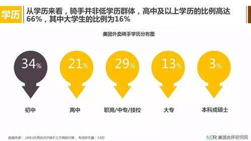 從美團(tuán)點(diǎn)評研究院發(fā)布的《2018年外賣騎手群體研究報告》中我們可以看到,從事騎手職業(yè)的人通常來自小城市且文化水平偏低,這就導(dǎo)致騎手在與消費(fèi)者交流中常因?yàn)槿狈贤记僧a(chǎn)生爭執(zhí)。也親眼見過騎手去咖啡店取餐,因?yàn)閷Х炔涣私猓胀ㄔ捰植缓?,溝通浪費(fèi)了很長時間,過程中遭店員頻繁白眼。