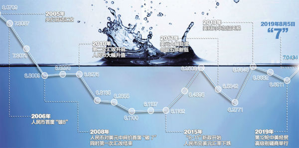 8月5日9時25分出爐的人民幣對美元中間價跌穿6.90關(guān)口,報6.9225,較前一交易日下調(diào)229點,中間價貶至2018年12月3日以來最低。與此同時,當日在岸、離岸人民幣雙雙跌“破7”關(guān)口。截至記者18時35分發(fā)稿,離岸人民幣最低報7.10570,在岸人民幣最低報7.04740。