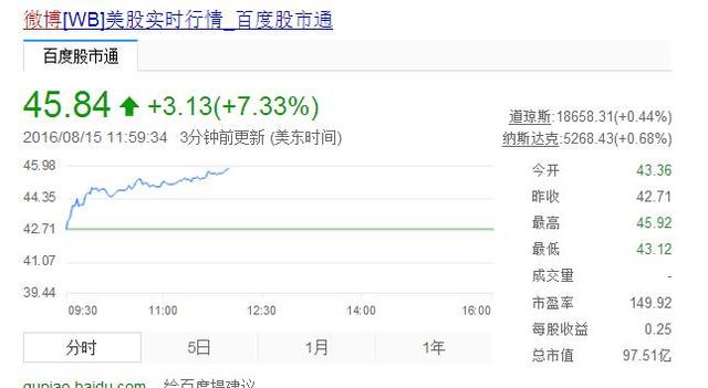 而經(jīng)過這次事件,相信新浪微博會統(tǒng)計下上漲多少。 8月15日新浪微博股價,又一個歷史新高!又TM賺了!