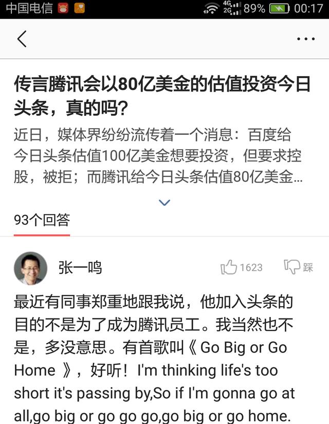 如果說今日頭條有望突破BAT現(xiàn)在的三家互聯(lián)網(wǎng)大托拉斯的格局,小波也是信了。 怪不得,前段時間吵得沸沸揚揚的騰訊投資今日頭條,張一鳴回復說:“最近有同事鄭重地跟我說,他加入頭條的目的不是為了成為騰訊的員工。我當然也不是,多沒意思。”還特別幽默的推薦了一首歌《Go Big or Go home》。其中的意思不言而喻,當你手里有個會下金蛋的雞,別人拿錢來買,你會賣嗎?當然不會,尤其是當這只下金蛋的雞沒長大的時候,更不會!