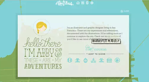 3、關(guān)于作品集類型的創(chuàng)意網(wǎng)站布局,如下面的網(wǎng)站,是一個(gè)作者的原創(chuàng)作品收藏。如果你沒有走進(jìn)這個(gè)網(wǎng)站,看到小編給的這張圖片是否覺得它很普通,色彩也顯得暗淡,其實(shí)這個(gè)網(wǎng)站的布局非常有意思,從你進(jìn)網(wǎng)站開始,頁面就會跟著你的鼠標(biāo)所指的位置移動,點(diǎn)擊你想要了解的內(nèi)容就可進(jìn)入詳情頁。而網(wǎng)站左上角的心形則是整個(gè)網(wǎng)站的導(dǎo)航欄,進(jìn)入退出一鍵搞定。