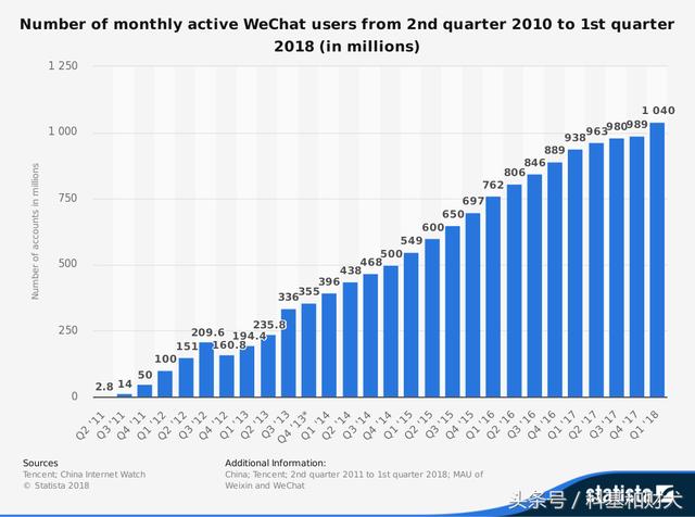 從當前的用戶數(shù)量來看,微信以10億月活成為全球應用第一梯隊。
