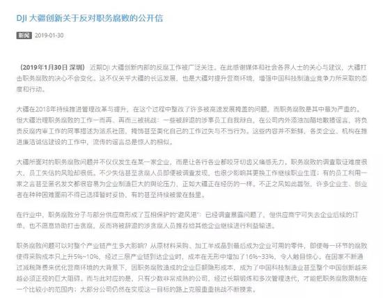 不僅僅是對公司內(nèi)部,職務(wù)腐敗還會(huì)對整個(gè)產(chǎn)業(yè)鏈產(chǎn)生多大影響?大疆在一封公開信中表示,從原材料采購、加工半成品到最后成為企業(yè)可用的零件,即使每一環(huán)節(jié)的腐敗使得采購成本只上升5%-10%,經(jīng)過三層產(chǎn)業(yè)鏈到達(dá)企業(yè)時(shí),成本在無形中增加了16%-33%,令人觸目驚心。